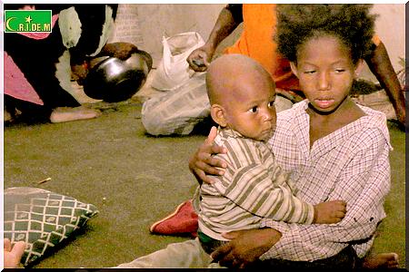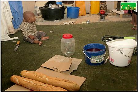 En plus des donations, on doit conscientiser! Cette petite fille assise aurait dû avoir autre chose à faire qu'à tenir son jeune frérot entre les bras! Un massacre!