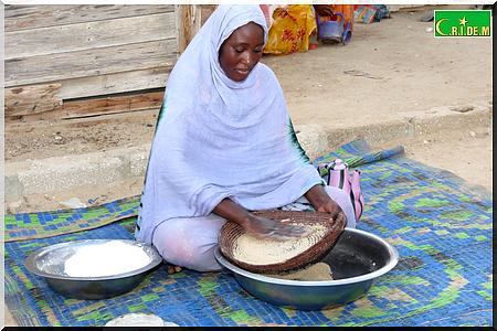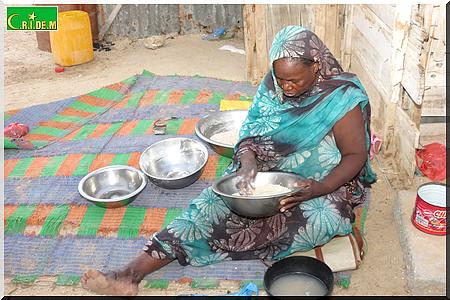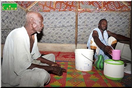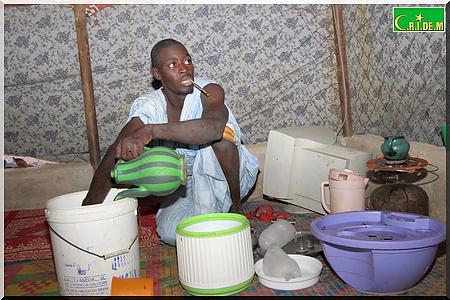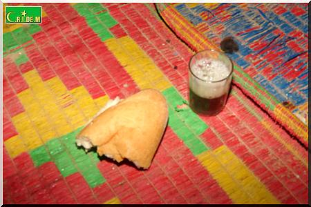 Cet après-midi, c’est la dèche totale. Le vieux Tigh Ould Sara est rentré juste avec 1 kg de sucre par magie. Ce soir, à l’heure de la rupture, il n’y aura pas de dattes à jeter dans la bouche. On se contentera, y compris moi également, de zrig, du thé, du pain et plus tard dans la soirée de la bouillie de mil.