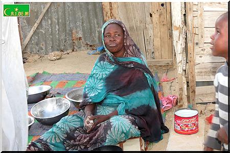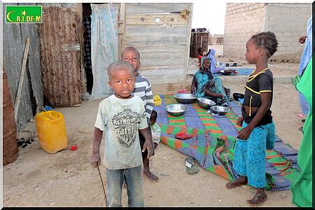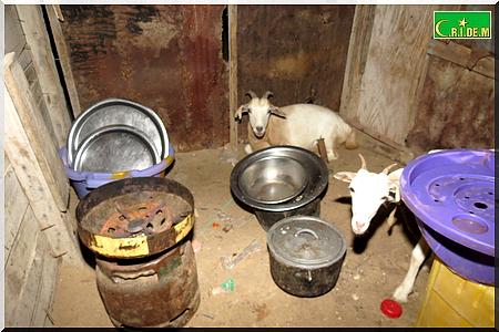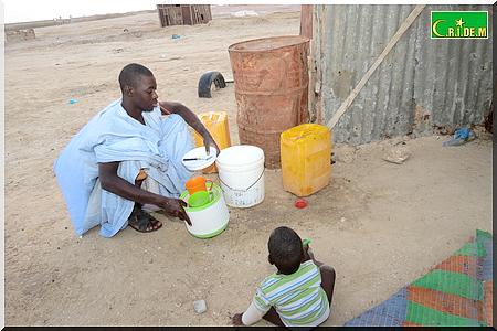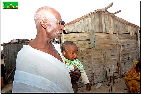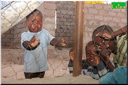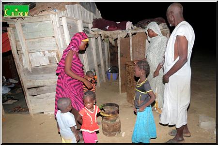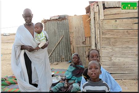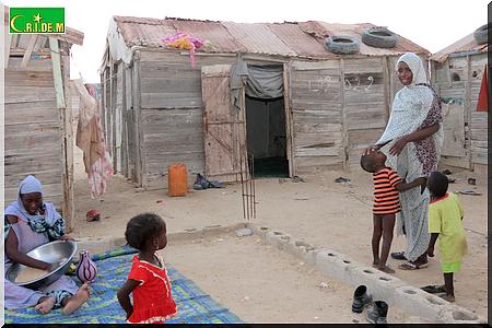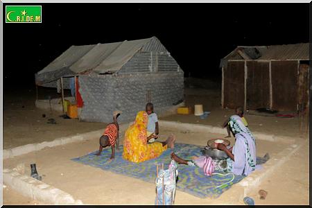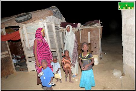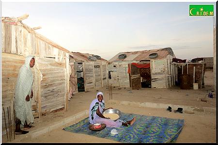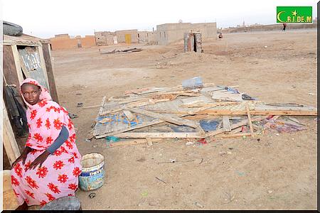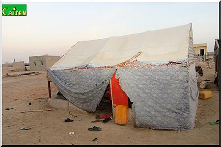Ici, père, mère, belle-fille, petits-fils partagent en tout trois baraques. Il y’a quelques années, le vieux Tigh Ould Sara, qui vivait avec sa famille aux kebbas de Mendès, a bénéficié gratuitement d’une distribution de lots de terrains. Grâce à l’un de ses fils, qui est d’ailleurs maçon, la famille avait réussi à construire deux chambres en béton. Puis, un jour, son fils est tombé malade. Depuis, les travaux ont été arrêtés.