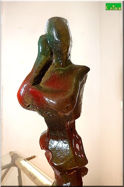 L’exposition s’ouvre sur une sculpture aux formes déliées et secrètes. Il s’agit de "Jeune fille" sculptée en deux versions. "On ne sait pas si c’est une mauresque, une halpoular, une Wolof ou une Soninké", note Mokhis qui explique que l’essentiel n’est pas de regarder mais de sentir fondre les identités et les différences dans le moule de l’unicité.