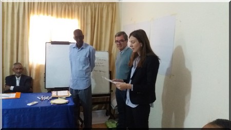 Mme Marion LALISSE, chef de section au sein de la Délégation de l’Union Européenne, a rappelé que « la Délégation de Union européenne a signé en mai 2015 une feuille de route pour son engagement avec la société civile, avec les Etats membres de l'UE qui sont présents en Mauritanie (Allemagne, Espagne et France). Cette feuille de route symbolise notre volonté conjointe de continuer à travailler avec la société civile dans sa diversité pour les années à venir, tout en décuplant les effets de nos assistantes respectives. Les formations qui sont délivrées aujourd'hui font pleinement partie des engagements pris dans cette feuille de route ».