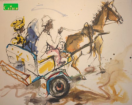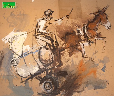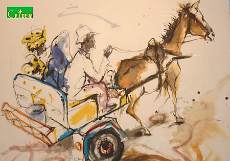 Comme toujours, dans ses expositions. Entre sculptures et peintures, l’exposition "Esquisses de vie" installe le visiteur dans les rues de Nouakchott, à la rencontre des chèvres, des ânes, de la vendeuse de fruit…