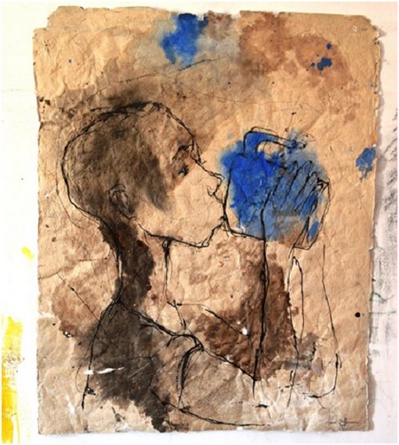 C’est aussi sans doute ce contexte et cette absence d’éducation à l’art qui confèrent à Oumar Ball une spontanéité qui fait la richesse et l’originalité de son œuvre. « La plupart de mes œuvres je les réalise sans faire d’esquisse. Je débute à même la toile, ça laisse des lignes de crayons, de charbon, des superpositions de couches et de tâches. »