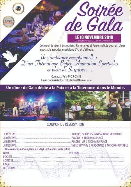 09-11-2018 01:00 - Nouakchott Jazz Festival 2018 : dîner concert "Prestige-Jazz", le 10 novembre à l’hôtel MONOTEL