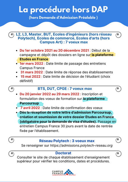 • Autres formations connectées avec Campus France comme certaines écoles d'ingénieur et de commerce (à vérifier auprès des écoles)