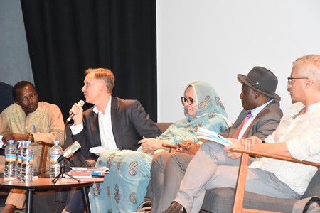Actualité oblige. Dès l’entame, le public a été convié à un sujet d’épreuves : « Retour de conflits et guerres, quelles paroles pour la paix ? » La rencontre a eu lieu le vendredi 2 décembre à l’Institut français avec Gwilym Jones, ambassadeur de l’Union européenne en Mauritanie, Mehla Mint Ahmed Talebna, ancienne ministre et actuelle présidente de l’Observatoire national des droits de la femme et de la fille, et les écrivains Abdellah Baïda et Eugène Ébodé.