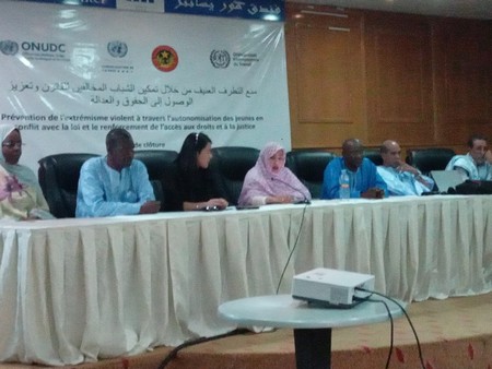 Le projet « Prévention de l’extrémisme violent à travers l’insertion des jeunes en conflit avec la loi et le renforcement de l’accès aux droits et à la justice » s’achève le 13 août 2023, après 18 mois d’intenses activités entre acteurs mauritaniens (gouvernement et société civile), et partenaires techniques d’exécution, en l’occurrence l’Organisation des Nations Unies contre la Drogue et le Crime (ONUDC) et le Bureau international du travail (BIT), avec le soutien du Fonds du Secrétaire général des Nations Unies pour la consolidation de la paix.