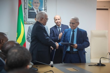 Sous la supervision de Son Excellence Monsieur Mohamed Abdallahi Ould Louly, Ministre de l’Autonomisation des Jeunes, de l’Emploi, des Sports et du Service civique, et de Monsieur Mohamed Ould Noueigued, Président du Conseil d’Administration de la Banque Nationale de Mauritanie (BNM), et en vertu d’un mandat conjoint, les deux parties ont procédé à la signature d’une convention relative à la remise et aux modalités de décaissement d’une contribution financière destinée à soutenir les programmes d’emploi des personnes en situation de handicap.